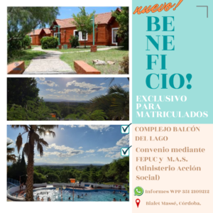 Temporada Verano 2025 -206 Nuevo convenio del Colegio Provincial, como miembro de FEPUC, a través del Ministerio de Acción Social. COMPLEJO BALCON DEL LAGO Disponible